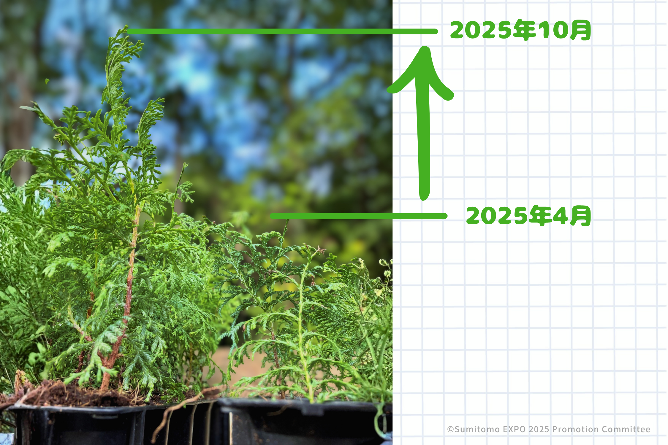 Since the Expo opened in April 2025, the seedlings have grown to about twice their original size!
